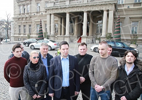 Nemanja Sarovic, leader of the Faith, Love, Hope movement, brought a cake for Goran Vesic for his birthday, which presented symbols of Vesic's leadership of Belgrade - a yellow excavator, demolition in Herzegovina, destruction of institutions, destru