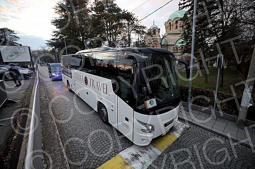 Buses with members of the Fejenodra football club team arrived in Humska street. Autobusi sa clanovima ekipe fudbalskog kluba Fejenodra stigli su u Humsku.
