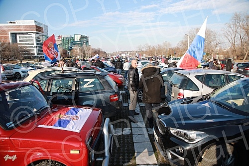 Driving a car called Z to win from the Sava Center to the Church of the Holy Trinity, next to the Church of St. Mark in support of Russia. Voznja automobilima pod nazivom Z za pobedu od Sava centra do hrama Svete Trojice, pored Crkve Svetog Marka u