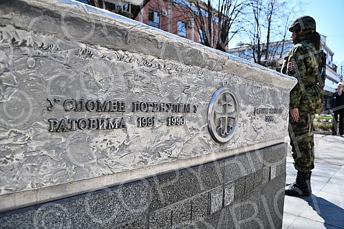 Marking the 23rd anniversary of the NATO bombing of FR Yugoslavia in 1999 - commemoration of soldiers from the territory of the Raska administrative district near the monument and fountain on Jovan Saric Square in front of the City Administration of
