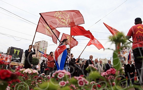 Communist Party of Serbia marking the International Labours Day at Slavija Square. Obelezavanje Dana Rada odrzano na Trgu Slavija.
