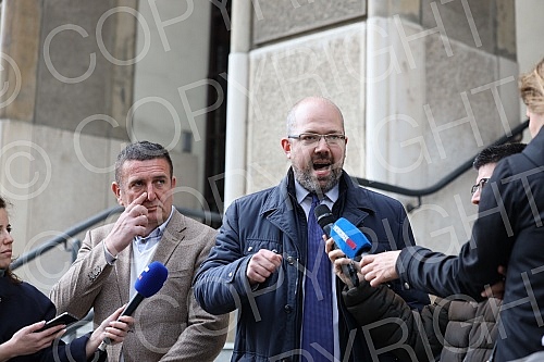 The Ajmo ljudi coalition organized a press conference in front of the Administrative Court on the occasion of the violation of the law by the GIK, which did not decide on the complaints within the legal deadline. Koalicija Ajmo ljudi je organizovala