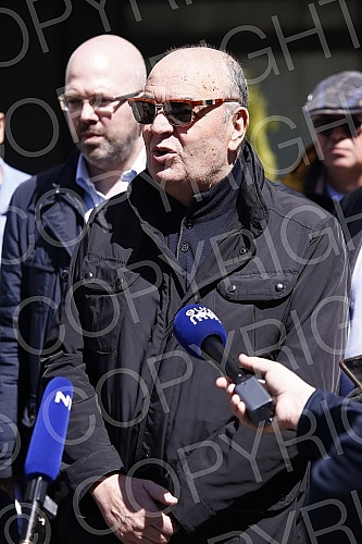 The press conference of the Let's Go People coalition on the occasion of the repeat elections for members of the Belgrade City Assembly at four polling stations was held in front of the Belgrade City Administration.