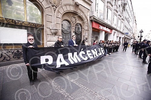 In Knez Mihailova Street, activists of the Humanitarian Law Center, Women in Black and the Youth Initiative for Human Rights organized a rally on the occasion of the 30th anniversary of the pre-election rally of the Serbian Radical Party in Hrtkovci.