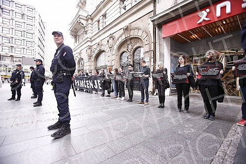 In Knez Mihailova Street, activists of the Humanitarian Law Center, Women in Black and the Youth Initiative for Human Rights organized a rally on the occasion of the 30th anniversary of the pre-election rally of the Serbian Radical Party in Hrtkovci.