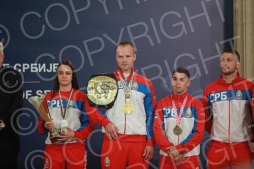 The President of the Republic of Serbia, Aleksandar Vucic, received the winners of gold medals at the European Boxing Championships, Vahid Abasov and Artyom Ageyev, as well as members of the delegation of the Boxing Federation of Serbia and the Olymp