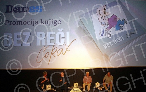The book "Without Words", a collection of cartoons by Predrag Koraksic Koraks, was held in the mts hall, and the book was published by Dan Graf, a house that is also the publisher of the daily Danas, in honor of the 25th anniversary of the newspaper.