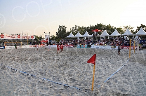 Euro Beach Soccer Cup 2016, quarter final game between Serbia and Hungary. Utakmica cetvrtfinala Evropskog kupa u fudbalu na pesku izmedju Srbije i Madjarske.