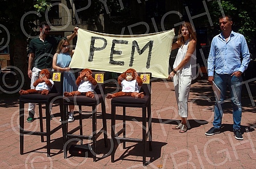 The Kreni-promeni movement and the Association for the Protection of Constitutionality and Legality organized a performance and a press conference in front of REM on the occasion of petitions to take away the frequency from Happy and Pink televisions