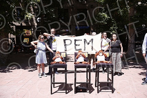 The Kreni-promeni movement and the Association for the Protection of Constitutionality and Legality organized a performance and a press conference in front of REM on the occasion of petitions to take away the frequency from Happy and Pink televisions