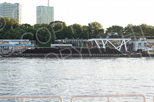 The coal on the barge floats on the Sava River in the direction of Obrenovac. Ugalj na barzi plovi rekom Savom u pravcu Obrenovca.