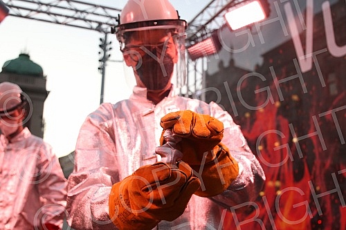 The pouring of Vinca figurines modeled on Vidovdanka from melted aluminum cans was realized on the Republic Square.
