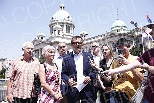 In front of the House of the National Assembly, a press conference of the President of the Movement for Change, Janko Veselinovic, on the occasion of the parliamentary elections and two years since the boycott of the previous elections.