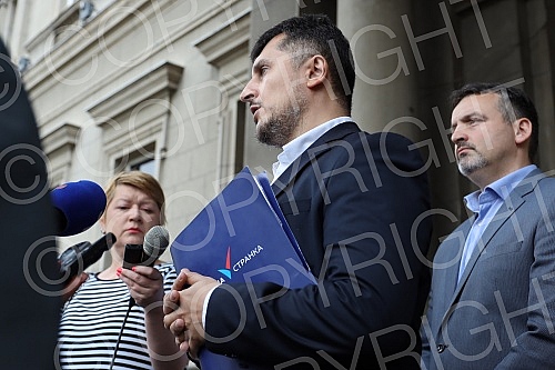 Milos Pavlovic, head of the People's Party's committee group, who will appeal to the Belgrade High Court to annul illegal decisions on the election of mayors, deputy mayors and members of the City Council, held a press conference in front of the Belg