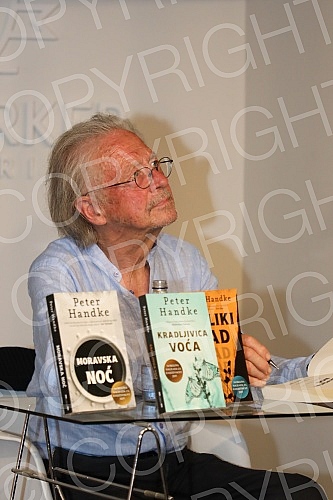 Nobelovac Peter Handke, koji je u kratkoj poseti Beogradu druzio se sa citaocima u knjizari Delfi SKC i potpi