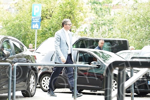 The arrival of members of the Serbian Progressive Party to the session of the Presidency, where a decision will be made on the SNS candidate for the President of the National Assembly. Dolazak clanova Srpske napredne stranke na sednicu Predsednistva