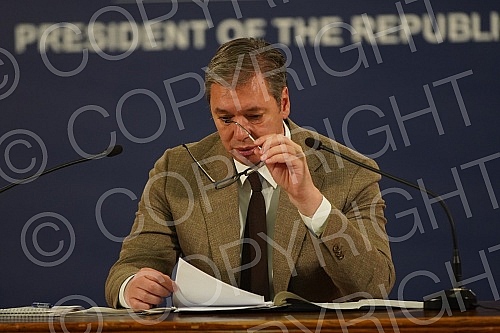 Address by the President of the Republic of Serbia, Aleksandar Vucic, to the public in the building of the General Secretariat of the President of the Republic. Obracanje predsednika Republike Srbije Aleksandra Vucica javnosti u zgradi Generalnog s