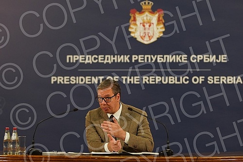 Address by the President of the Republic of Serbia, Aleksandar Vucic, to the public in the building of the General Secretariat of the President of the Republic. Obracanje predsednika Republike Srbije Aleksandra Vucica javnosti u zgradi Generalnog s