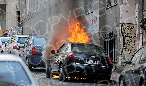 Car in fire in Cara Dusana street. Zapaljen auto u Cara Urosa.