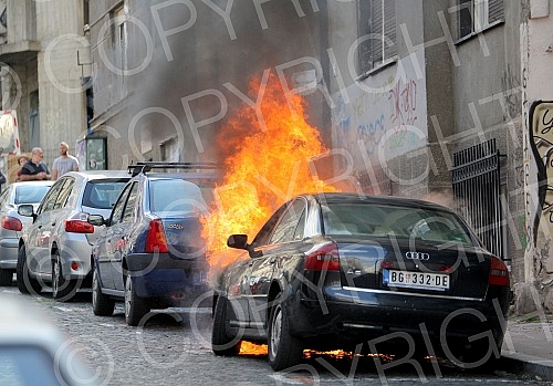 Car in fire in Cara Dusana street. Zapaljen auto u Cara Urosa.