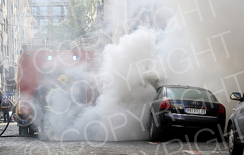 Car in fire in Cara Dusana street. Zapaljen auto u Cara Urosa.