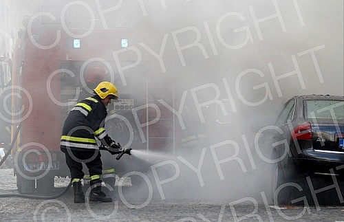 Car in fire in Cara Dusana street. Zapaljen auto u Cara Urosa.