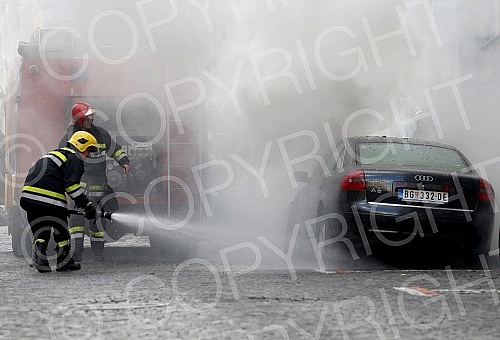 Car in fire in Cara Dusana street. Zapaljen auto u Cara Urosa.