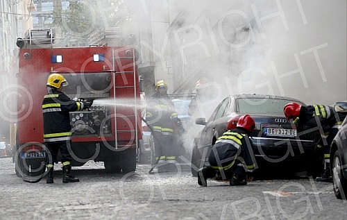 Car in fire in Cara Dusana street. Zapaljen auto u Cara Urosa.