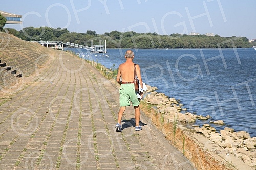 Low water level on the Danube River. Nizak vodostaj na reci Dunav.