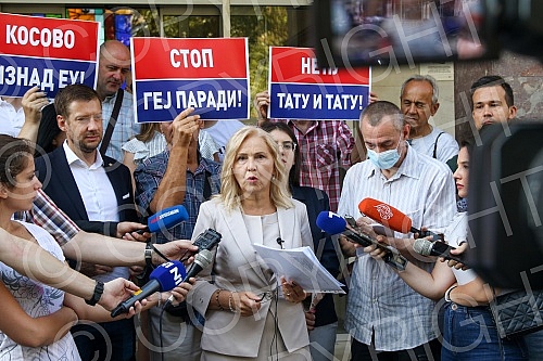 The parliamentary group Serbian Movement Dveri - Patriotic Block in the Assembly of Belgrade held a press conference in front of the Assembly of Belgrade.