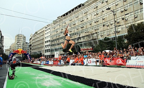 Womans long jump competition held in Belgrade. Takmicenje u skoku u dalj u sklopu promocije dvoranskog sampionata Evrope odzanao na beogradskim Terazijama.