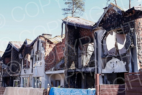 Destroyed and burned houses in the village of Horenka, located in the Bucan district, Kyiv region.