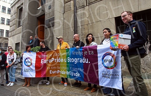 The extraordinary media conference of the organizers of EuroPride 2022 was held in front of the Serbian Government building.