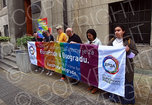 The extraordinary media conference of the organizers of EuroPride 2022 was held in front of the Serbian Government building.