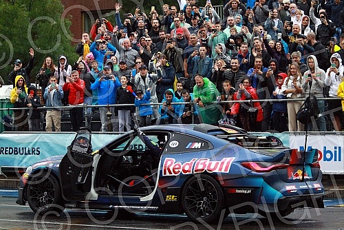 As part of the Redbull Show Run event, David Coulthard in the RB7 F1 car, the Drift Brothers in their BMW Drift cars and Arunas Aras Gibieza on a stunt motorcycle drove through the streets of Belgrade.