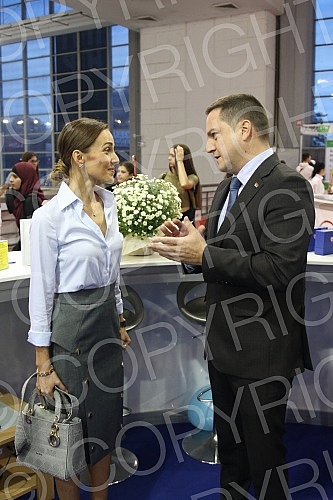 First Deputy Prime Minister and Minister of Education, Science and Technological Development Branko Ruzic with Novak and Jelena Djokovic visited the stand of the Ministry of Education, Science and Technological Development at the Education Fair in Ha