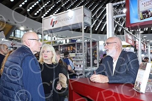 Vladeta Jankovic, Miomir Petrovic and Goran Milasinovic signed their books at the Laguna stand at the 65th International Book Fair at the Belgrade Fair.