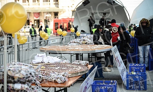On the Republic Square held a traditional event Bakers' Union of Serbia and crushing Christmas cesnica (Serbian traditional cake)
