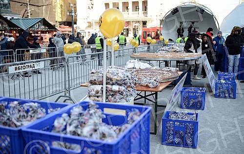 On the Republic Square held a traditional event Bakers' Union of Serbia and crushing Christmas cesnica (Serbian traditional cake)