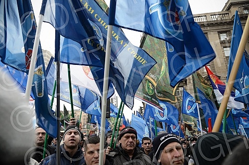 Protest Trade Union of Serbian army and police was held in front of the Serbian government building. Protest Sindikata vojske i policije Srbije odrzan ispred zgrade Vlade Srbije