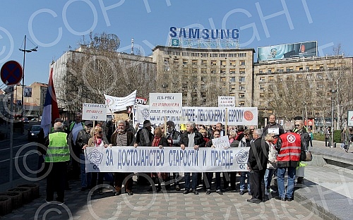 Protest of pensioners and military pensioners because of pension cuts Protest penzionera i vojnih penzionera zbog smanjenja penzija.