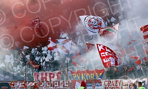 Serbian football Super League match between FK Crvena Zvezda and FK Spartak Subotica played at Rajko Mitic stadium.