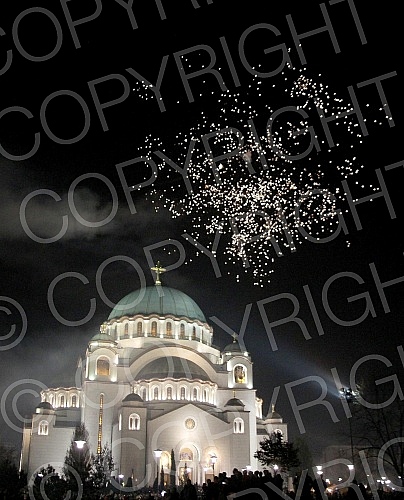 Proslava, sa vatrometom, Srpske (Pravoslavne) Nove godine ispred Hrama Svetog Save.