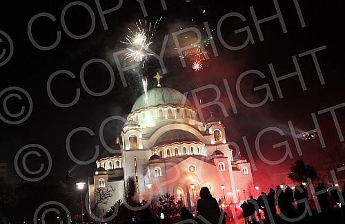 Proslava, sa vatrometom, Srpske (Pravoslavne) Nove godine ispred Hrama Svetog Save.