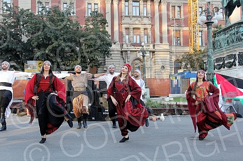At the Republic Square in Belgrade, a concert by the Palestinian folk group "Funonyat" from the Palestinian town of Ramall "We sing and play for Jerusalem". Na Trgu Republike u Beogradu, odrzan je koncert palestinske Folkolorne grupe “Funonyat”iz