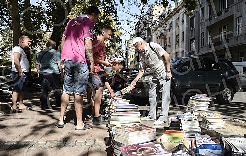 Kosovska street closed due to the sale of used books. Kosovska ulica zatvorena zbog prodaje polovnih knjiga.