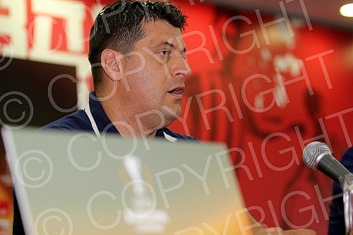 Press conference of Vladan Milojevic, coach of the FC Red Star before the match of the first round of Europa League (Group H) against BATE Borisov. Pres konferencija Vladana Milojevica, trenera Fudbalskog kluba Crvena zvezda pred utakmicu prvog kola