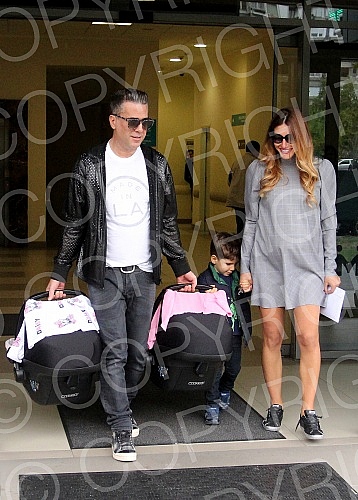 Jovana Joksimovic's exit from the maternity ward after the birth of the twin Ana and Srna.