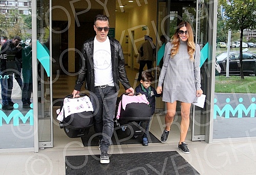 Jovana Joksimovic's exit from the maternity ward after the birth of the twin Ana and Srna.