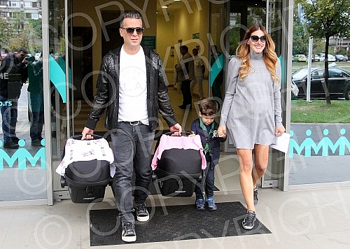Jovana Joksimovic's exit from the maternity ward after the birth of the twin Ana and Srna.